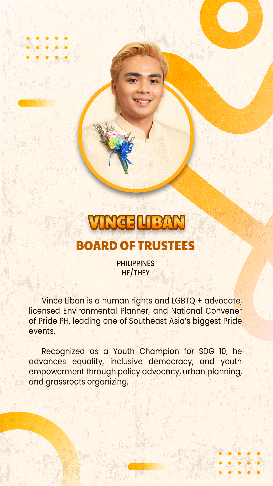 An advocate at heart, Louela is a part of several youth-led organizations in the Philippines with various advocacies ranging from climate justice, environmental protection, gender equality, human rights, SRHR, mental health prioritization, youth empowerment and HIV/AIDS awareness. She is currently the Interim Chairperson of Iloilo Pride Team after serving the organization for 4 years as the Admin Officer, Executive Secretary at Proyekto Philippines, Member of Team Dugong Bughaw, and more.